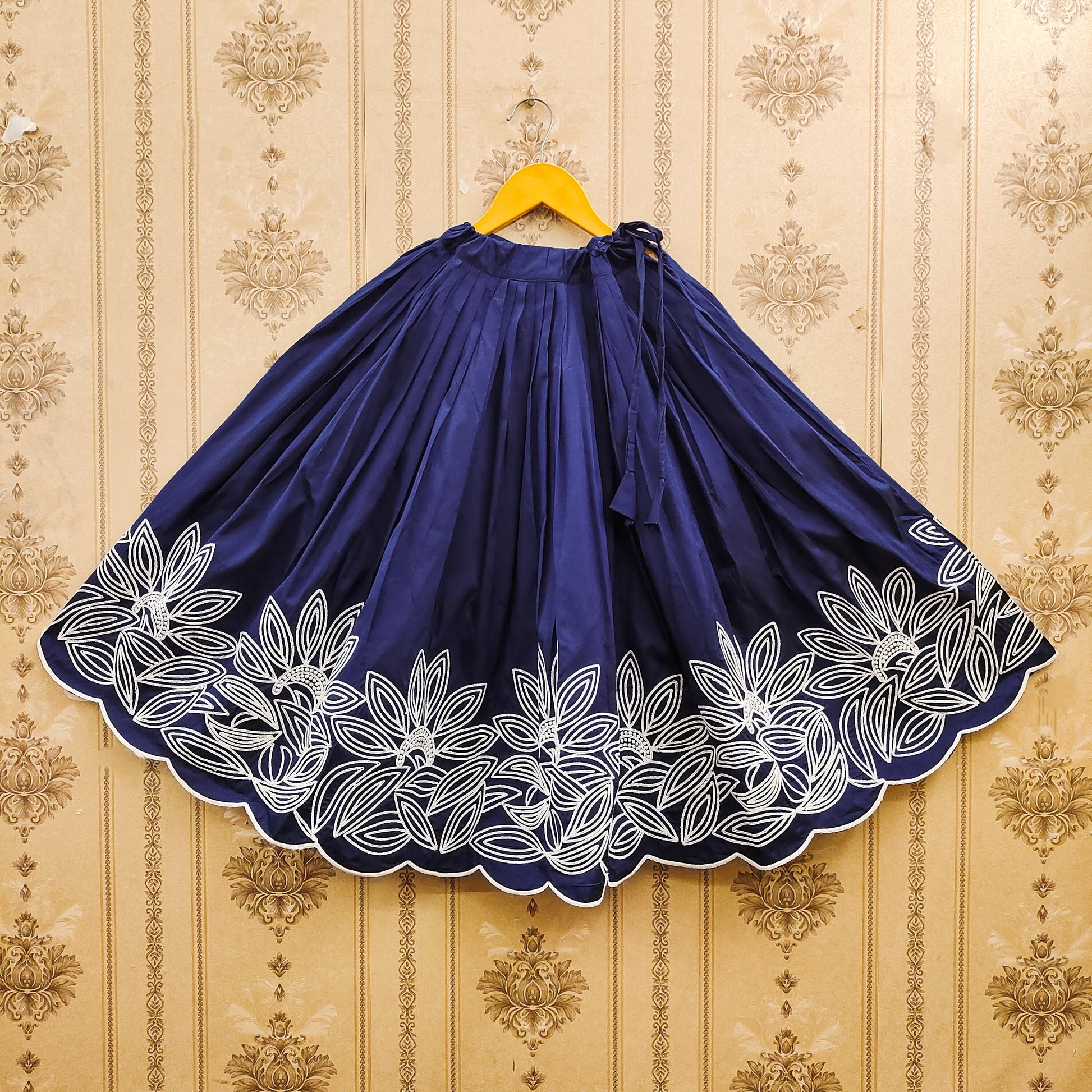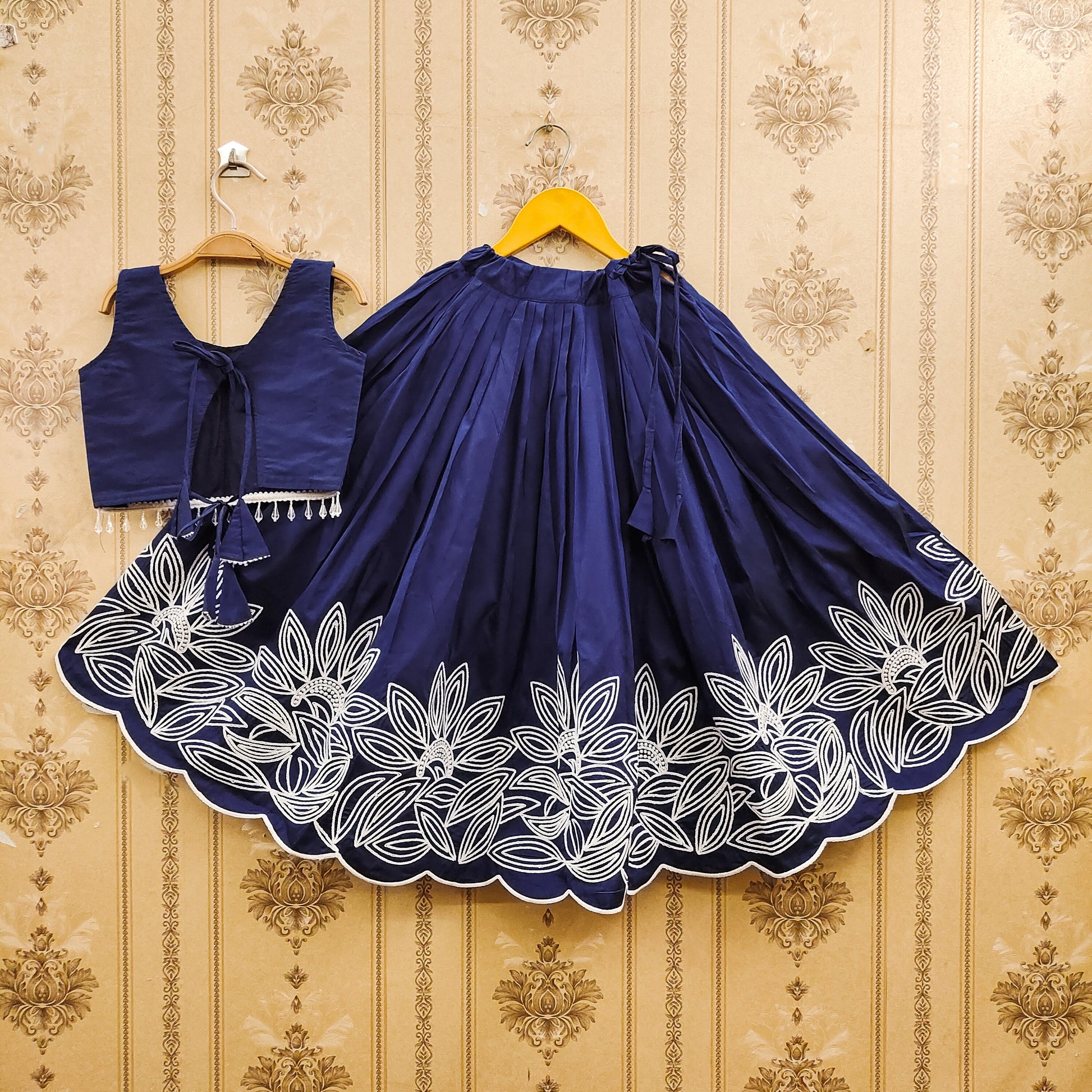 Dress your little one in timeless elegance with this Navy Blue Lehenga Choli Set, thoughtfully crafted to combine traditional charm with modern comfort. The ensemble features a beautifully embroidered choli, adorned with delicate cording, thread, and dori work, adding a touch of intricate artistry to the design.