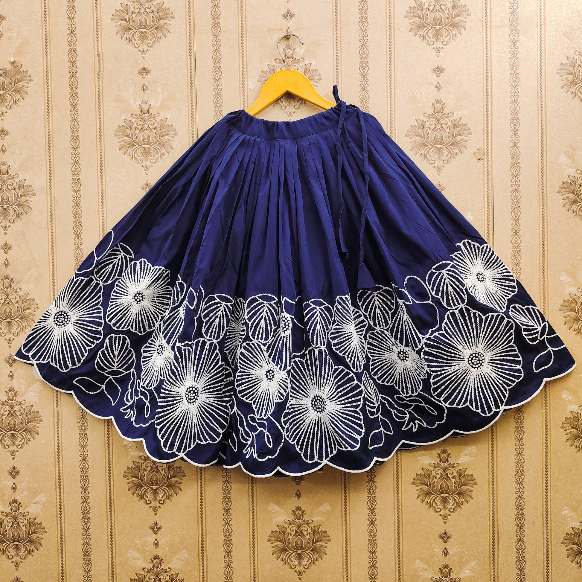 The ensemble features an intricately embroidered choli adorned with delicate cording, thread and dori work. Fully stitched and ready to wear, Navy Blue color , it ensures both comfort and style for your little one. Perfect for festivals, weddings, birthdays, and family gatherings, this beautifully crafted outfit celebrates the playful elegance of childhood.