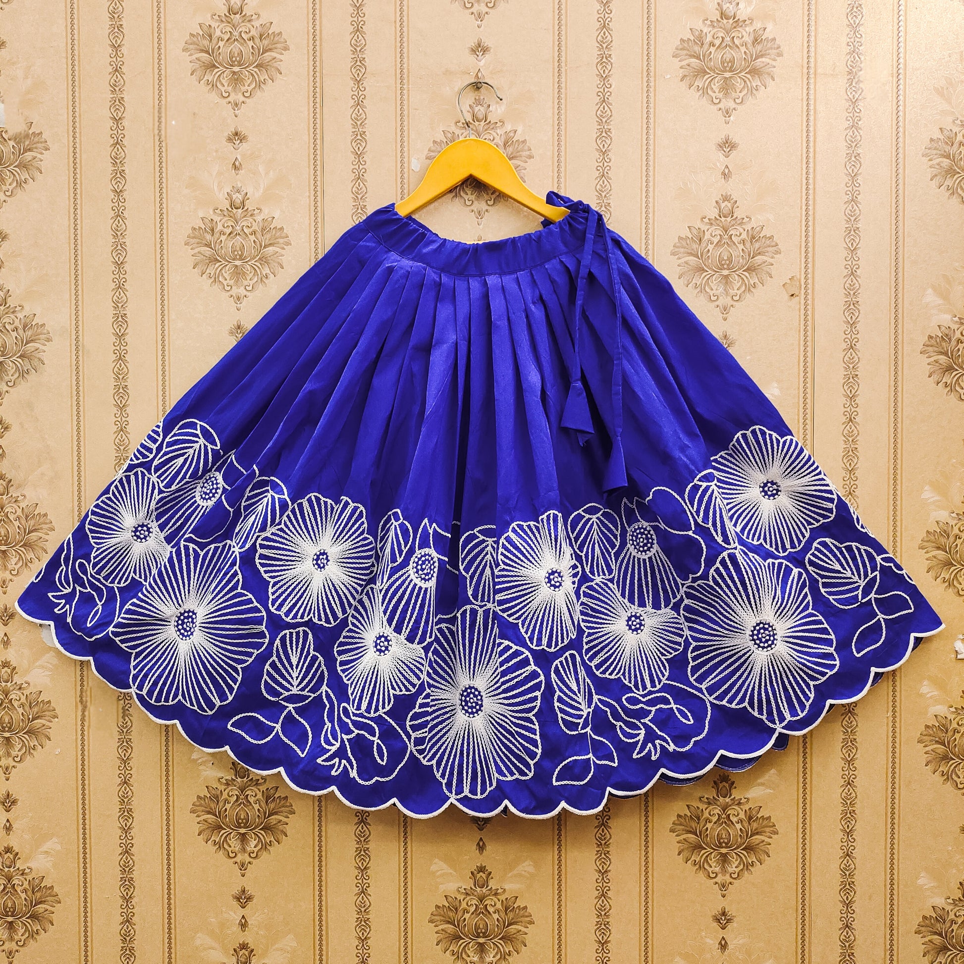The ensemble features an intricately embroidered choli adorned with delicate cording, thread and dori work. Fully stitched and ready to wear, Royal Blue color , it ensures both comfort and style for your little one. Perfect for festivals, weddings, birthdays, and family gatherings, this beautifully crafted outfit celebrates the playful elegance of childhood.