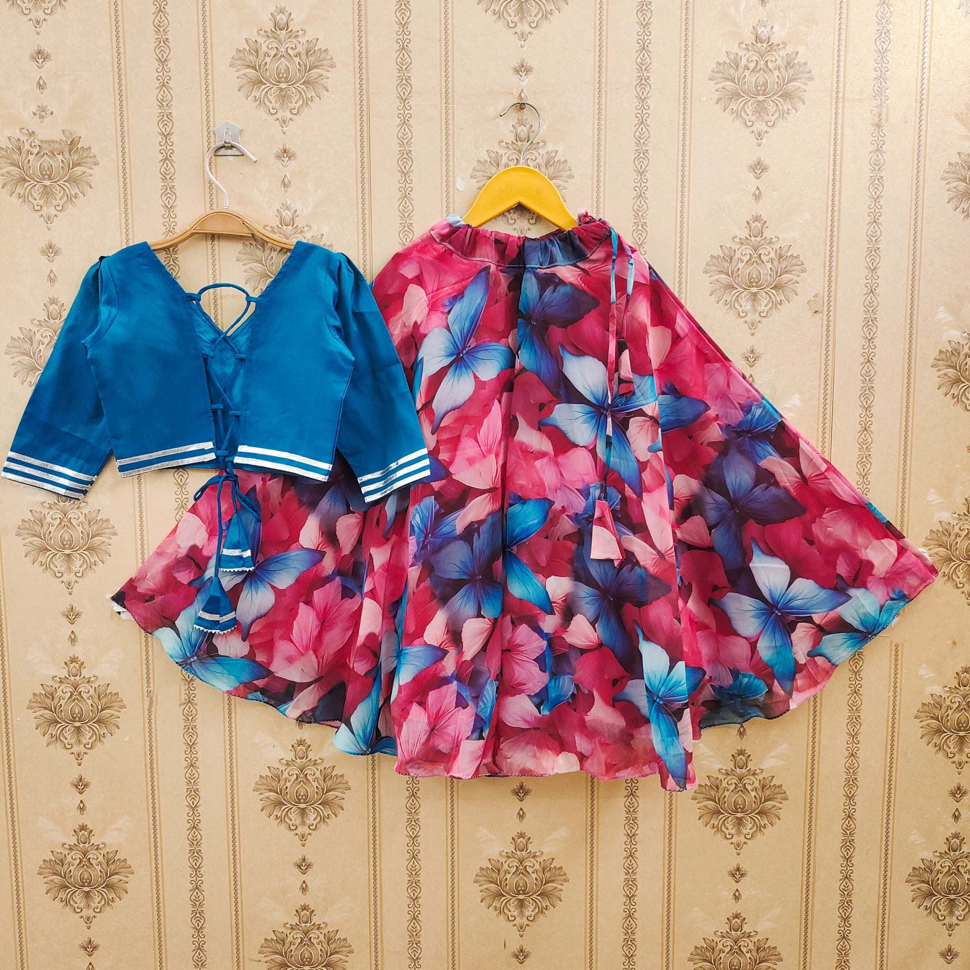 Your little one will look effortlessly radiant in thisΒ ethnic lehenga choli set, designed to blend comfort with dazzling style! β¨