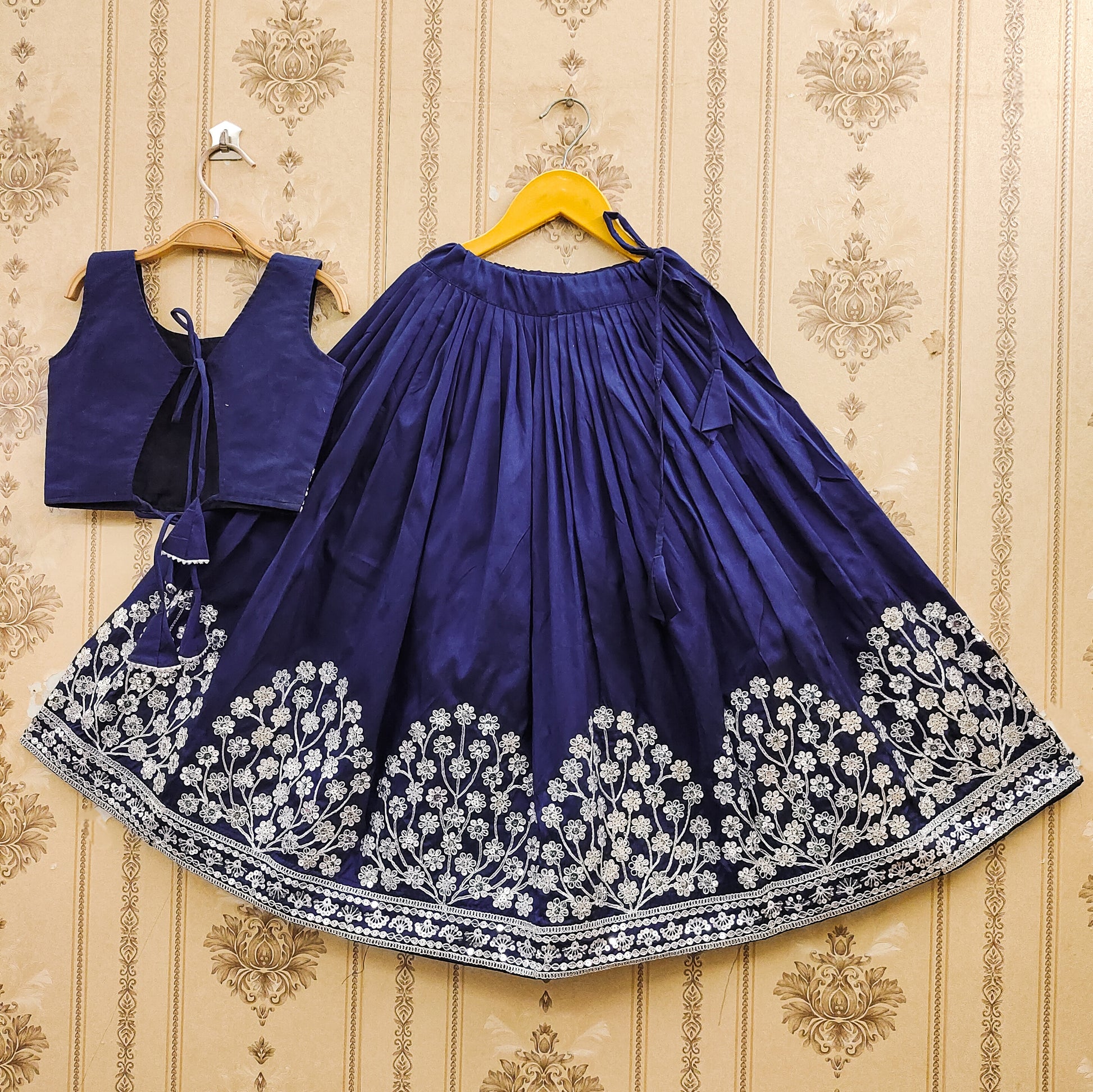 ✨ The ensemble features a beautifully embroidered choli with delicate Embroidery Sequence Work With Cording Dori accents – fully stitched and ready to wear! 🌸Perfect for festivals, weddings, birthday bashes, and family celebrations, this charming outfit captures the joyful spirit of childhood with elegance and flair. 💫👧💃