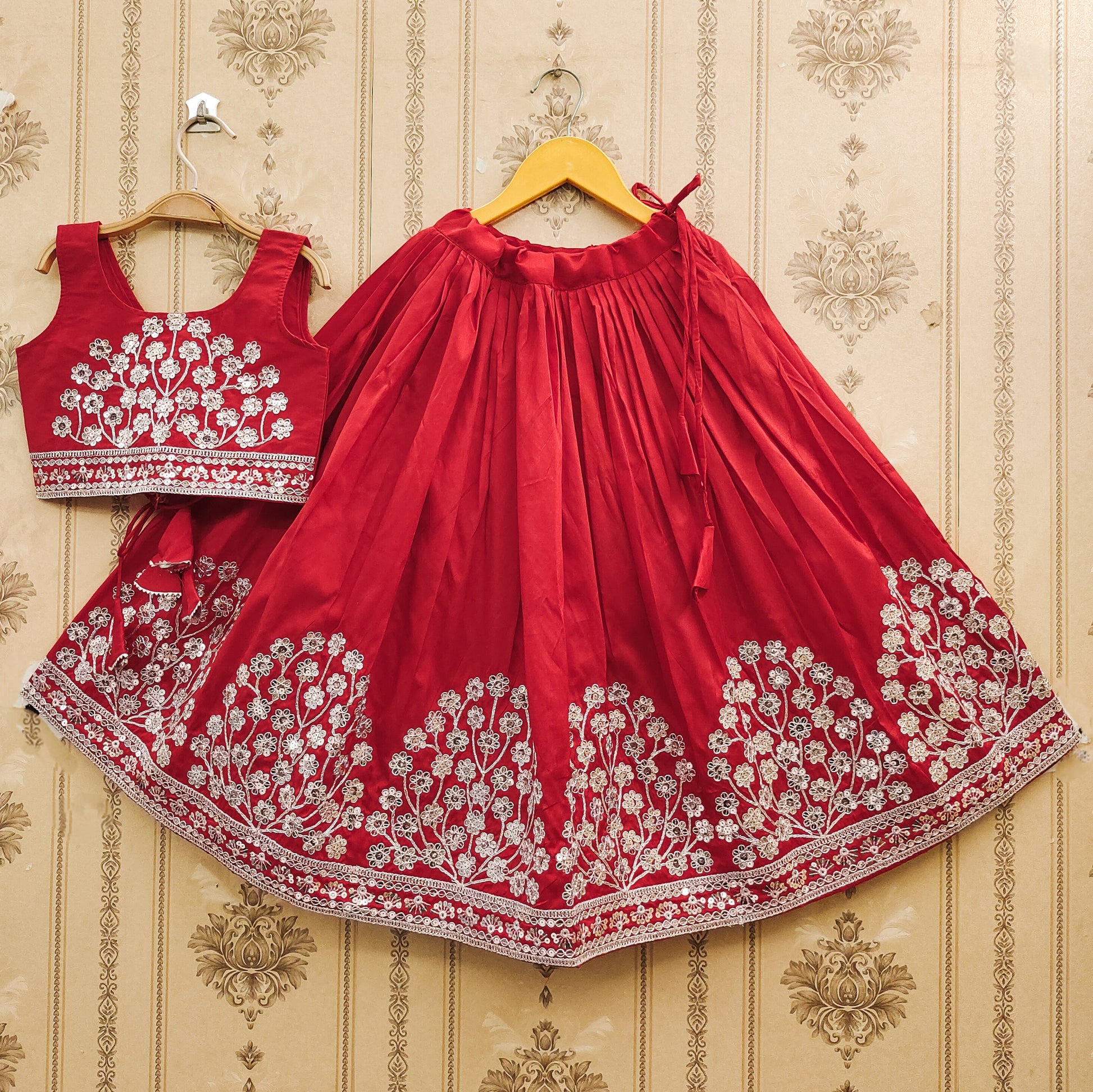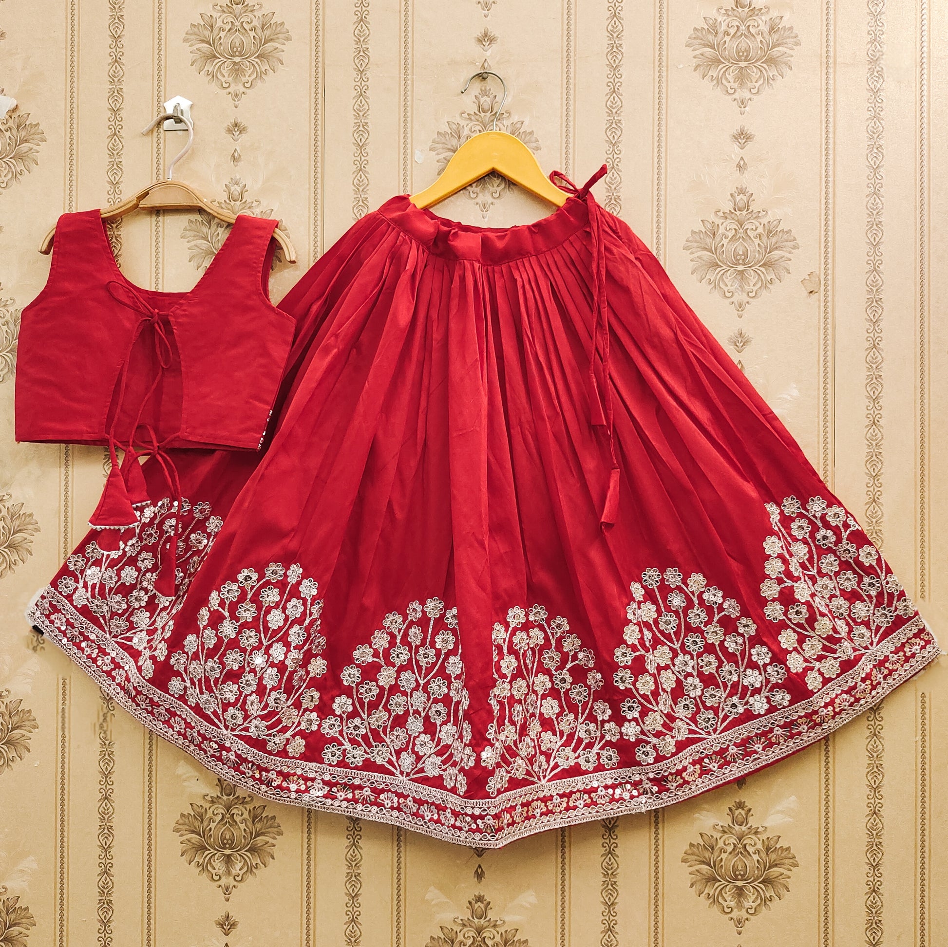 ✨ The ensemble features a beautifully embroidered choli with delicate Embroidery Sequence Work With Cording Dori accents – fully stitched and ready to wear! 🌸Perfect for festivals, weddings, birthday bashes, and family celebrations, this charming outfit captures the joyful spirit of childhood with elegance and flair. 💫👧💃