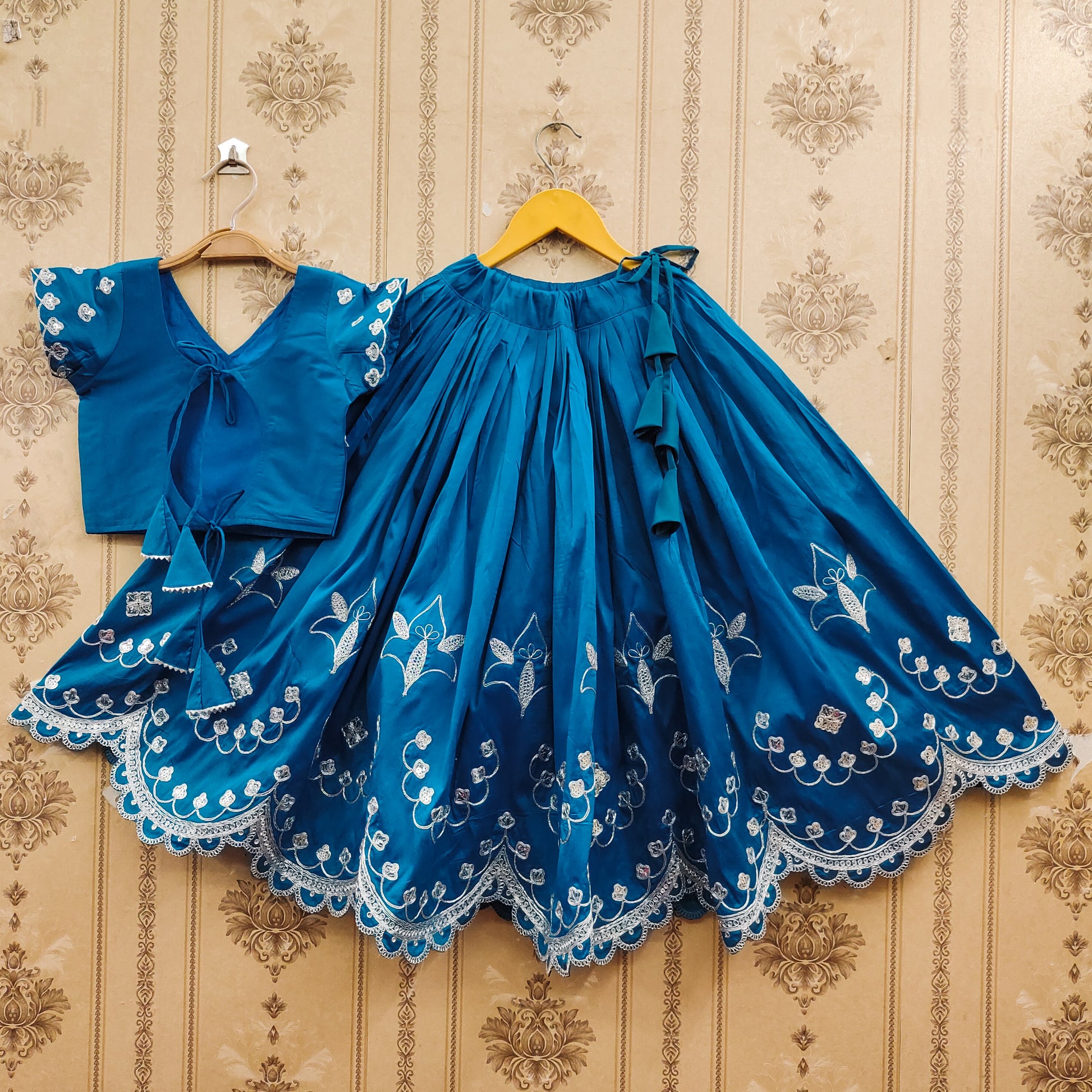 ✨ The ensemble features a beautifully embroidered choli with delicate Embroidery Sequence Work With Cording Dori accents – fully stitched and ready to wear! 🌸Perfect for festivals, weddings, birthday bashes, and family celebrations, this charming outfit captures the joyful spirit of childhood with elegance and flair. 💫👧💃