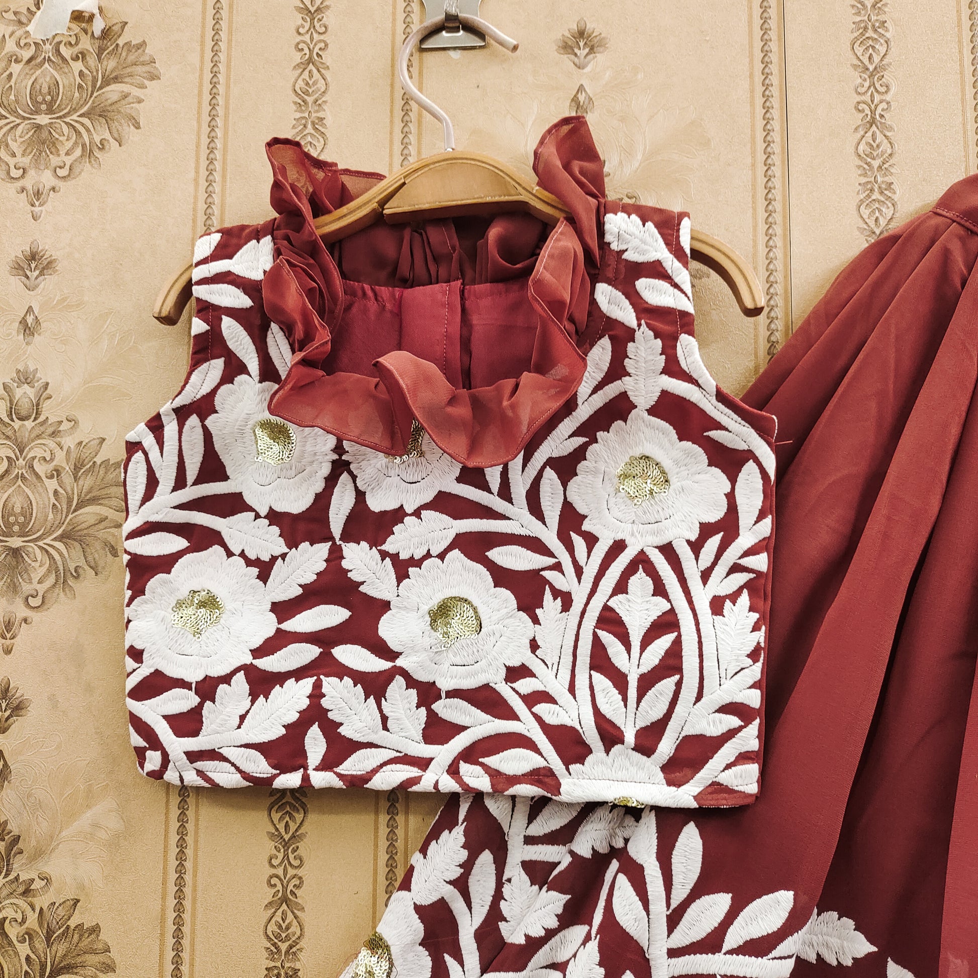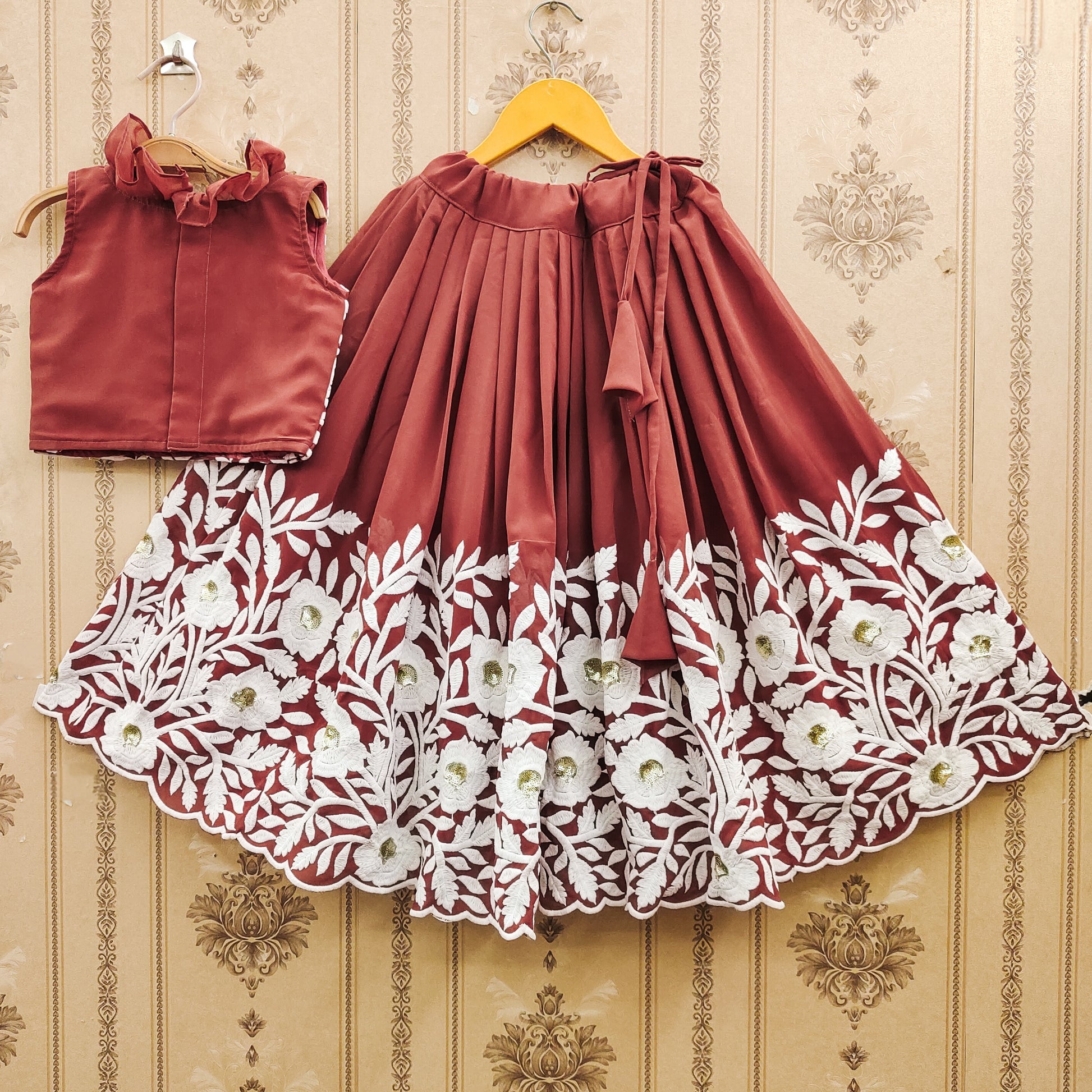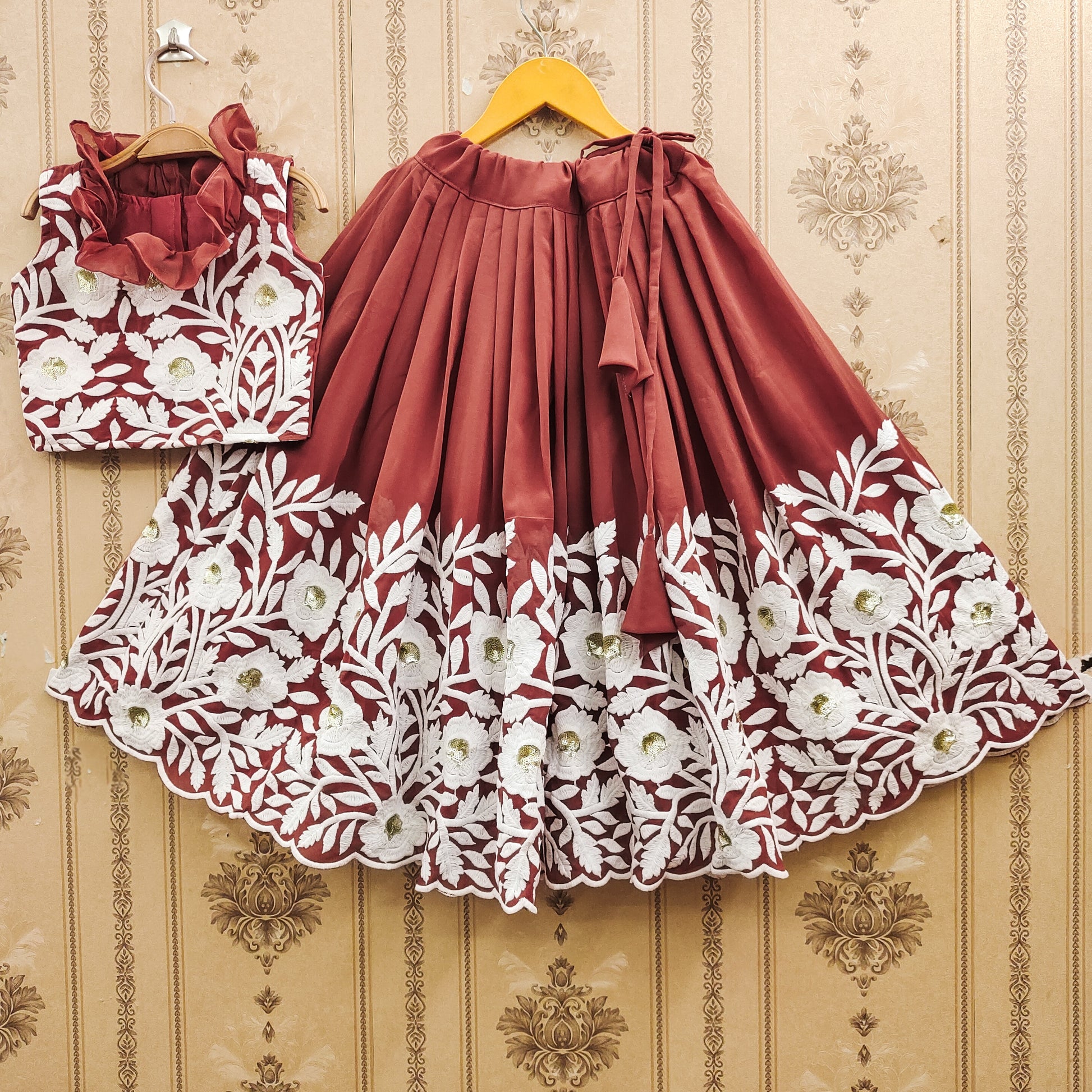 ✨ Make your little girl the center of attention with this elegant Rust Color lehenga choli set – a joyful fusion of tradition and trend! ✨