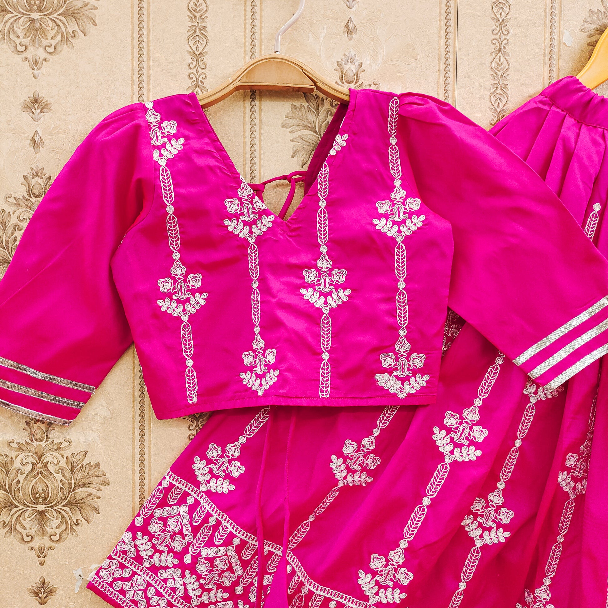 Made from high-quality fabric with Pink color and fully stitched for easy wear, this outfit offers both style and convenience. The ensemble features a Embroidery-work choli with Cording Dori Work With fully stiched ready to wear. Ideal for festivals, weddings, birthday parties, and family celebrations, it's a perfect choice for showcasing the joyful essence of childhood in a graceful way. The ensemble features a Embroidery-work choli with Cording Dori Work With fully stiched ready to wear.