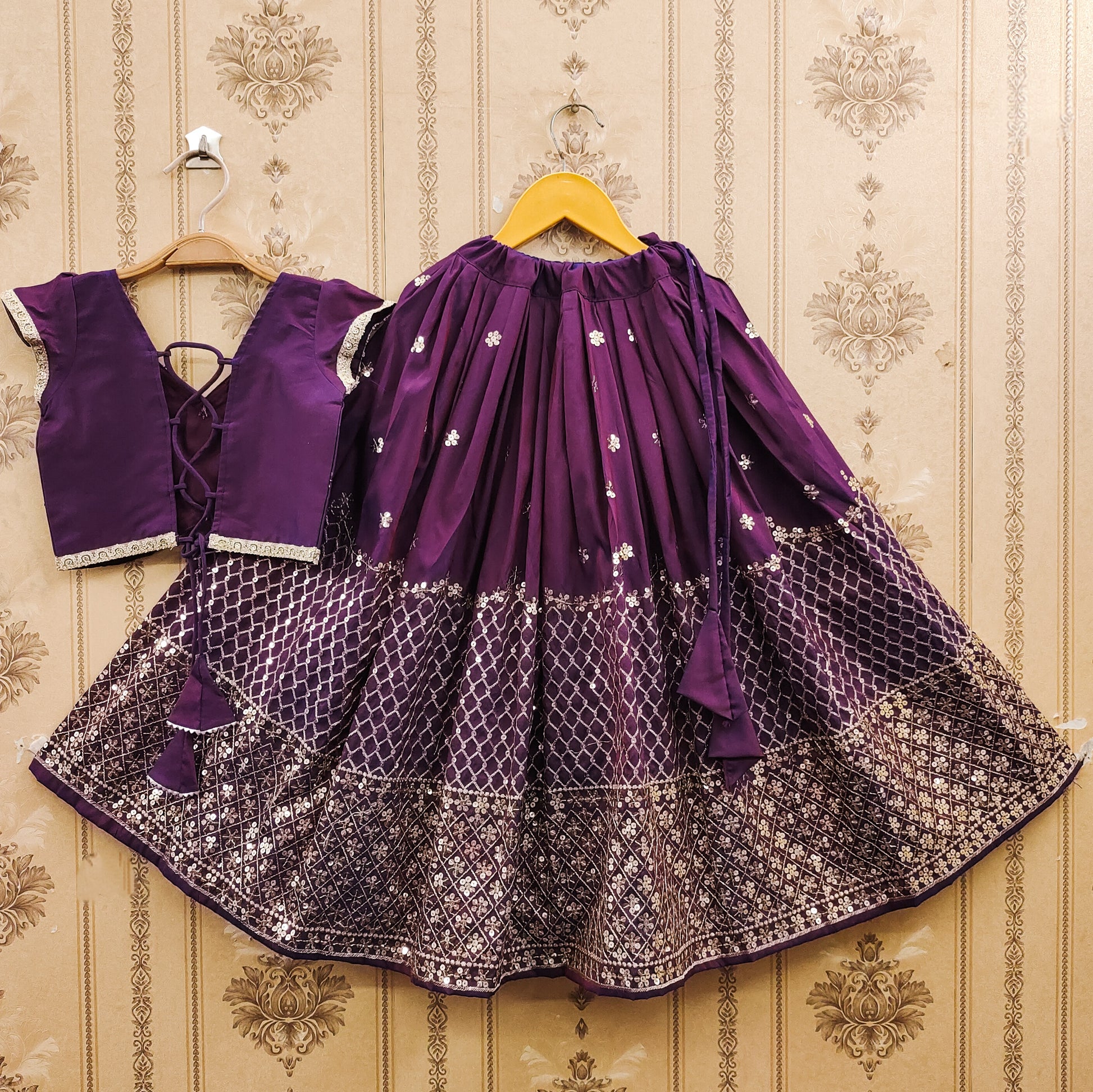 ✨ The ensemble features a beautifully embroidered choli with delicate Embroidery Sequence Work – fully stitched and ready to wear! 🌸Perfect for festivals, weddings, birthday bashes, and family celebrations, this charming outfit captures the joyful spirit of childhood with elegance and flair. 💫👧💃