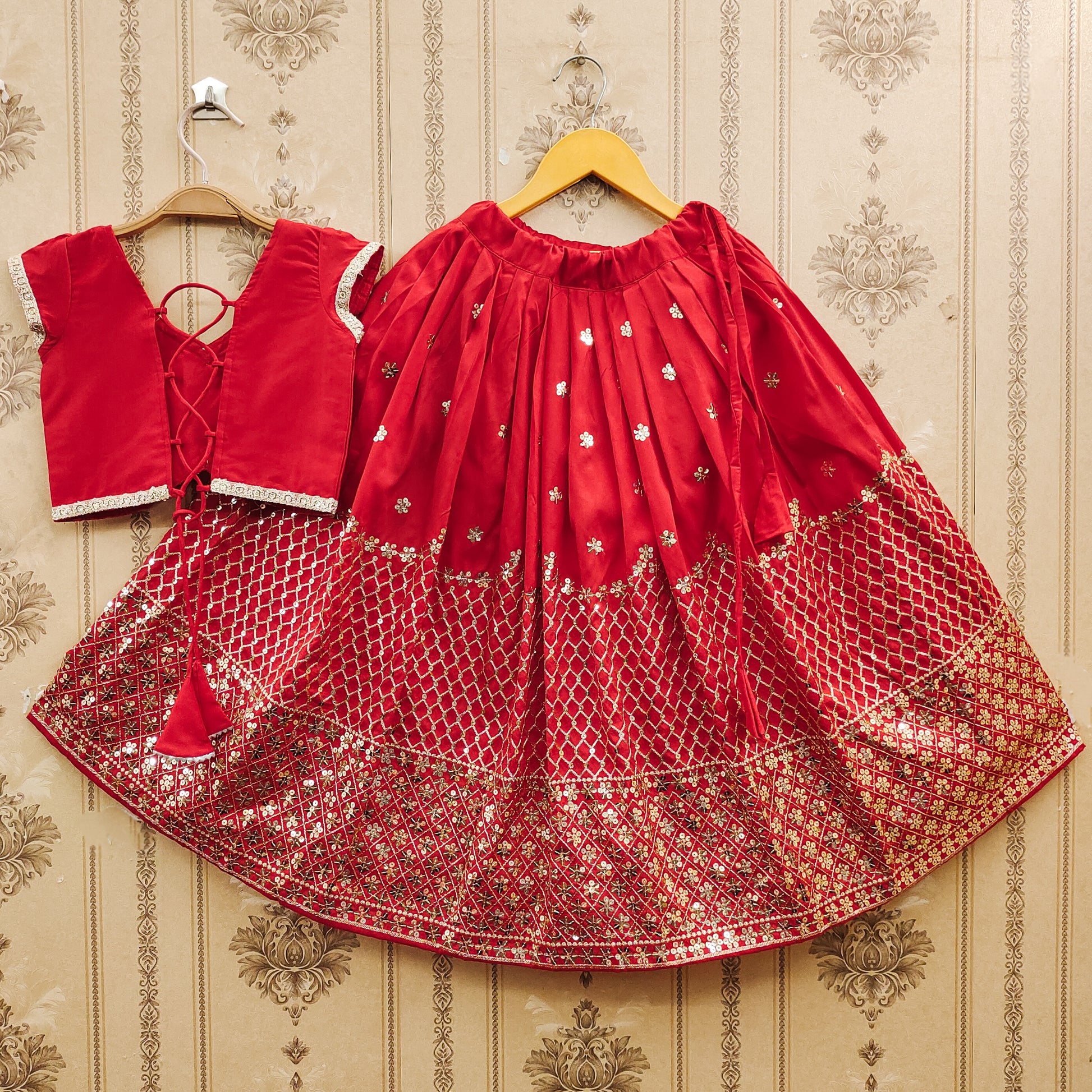 ✨ The ensemble features a beautifully embroidered choli with delicate Embroidery Sequence Work – fully stitched and ready to wear! 🌸Perfect for festivals, weddings, birthday bashes, and family celebrations, this charming outfit captures the joyful spirit of childhood with elegance and flair. 💫👧💃