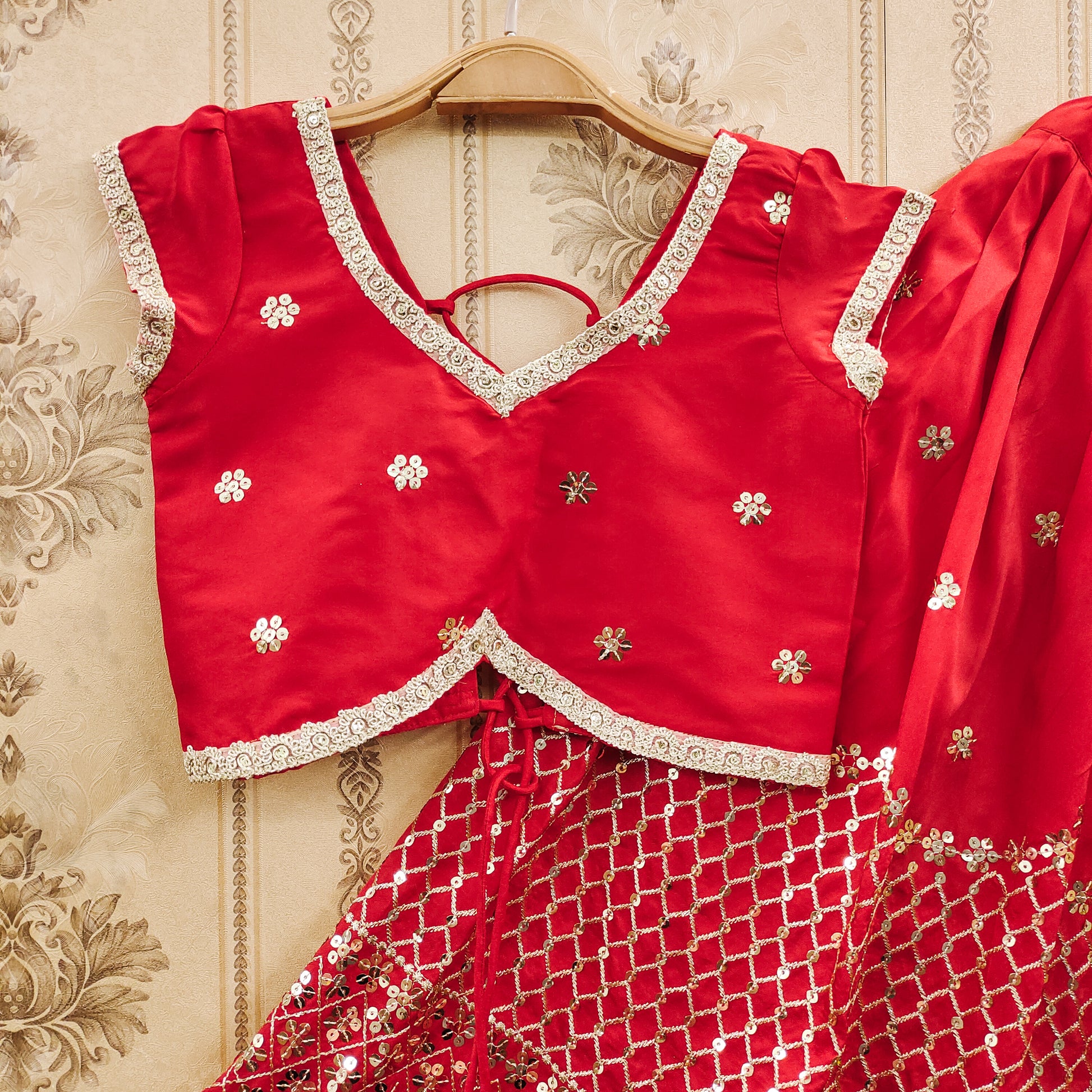 Made from high-quality fabric and Embroidery Sequence Work with Red color and fully stitched for easy wear, this outfit offers both style and convenience.