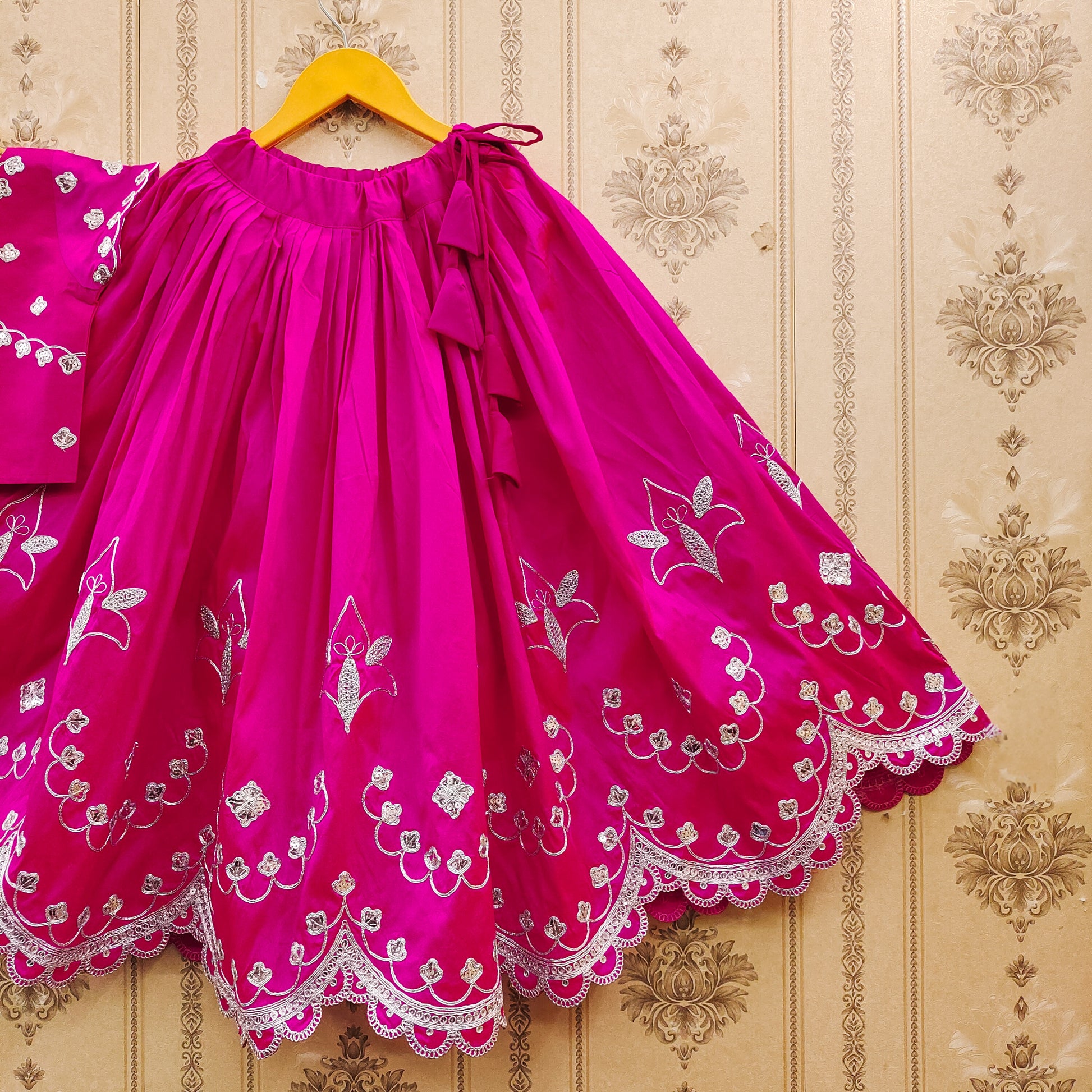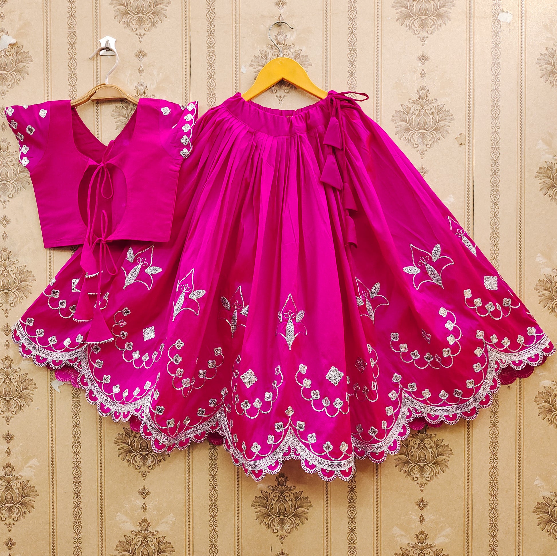 ✨ The ensemble features a beautifully embroidered choli with delicate Embroidery Sequence Work With Cording Dori accents – fully stitched and ready to wear! 🌸Perfect for festivals, weddings, birthday bashes, and family celebrations, this charming outfit captures the joyful spirit of childhood with elegance and flair. 💫👧💃