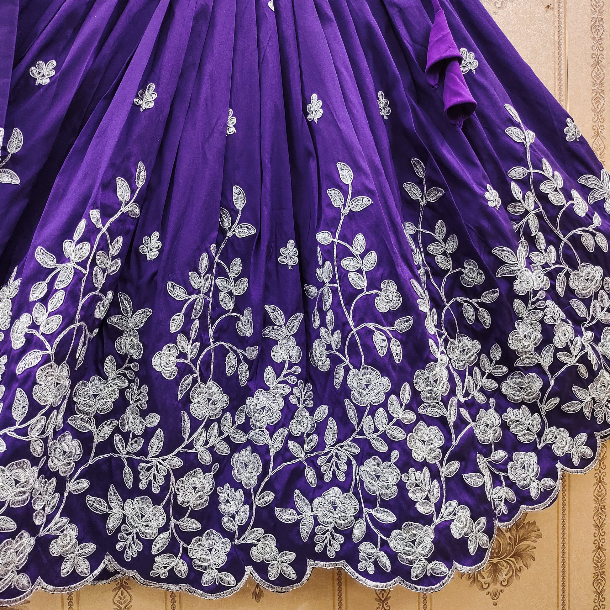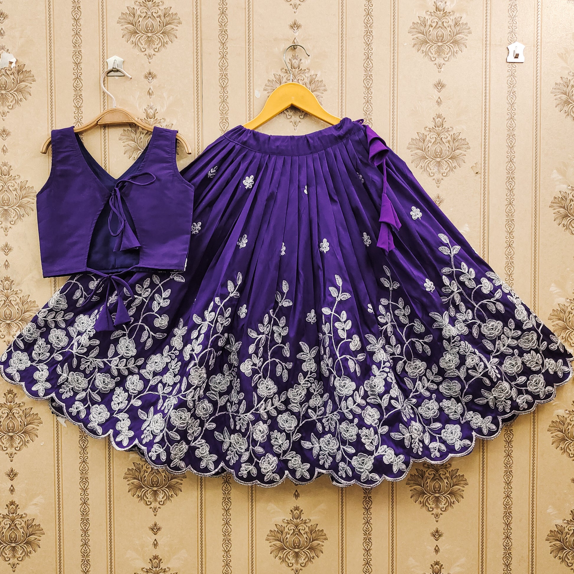 Make your little girl the center of attention with this violet(Jambali) Color lehenga choli set, a joyful fusion of tradition and trend. Perfect for festivals, weddings, birthdays, and family events, this outfit is crafted to bring out the playful elegance of childhood. The ensemble features a Embroidery-work choli with Cording Dori Work With fully stiched ready to wear.