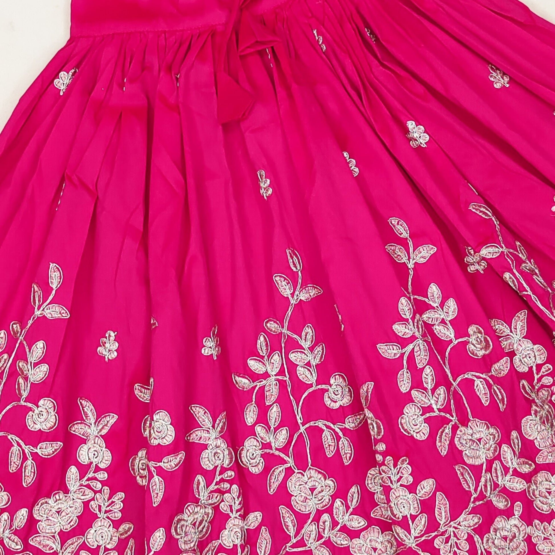 Make your little girl the center of attention with this Pink Color lehenga choli set, a joyful fusion of tradition and trend. Perfect for festivals, weddings, birthdays, and family events, this outfit is crafted to bring out the playful elegance of childhood. The ensemble features a Embroidery-work choli with Cording Dori Work With fully stiched ready to wear.