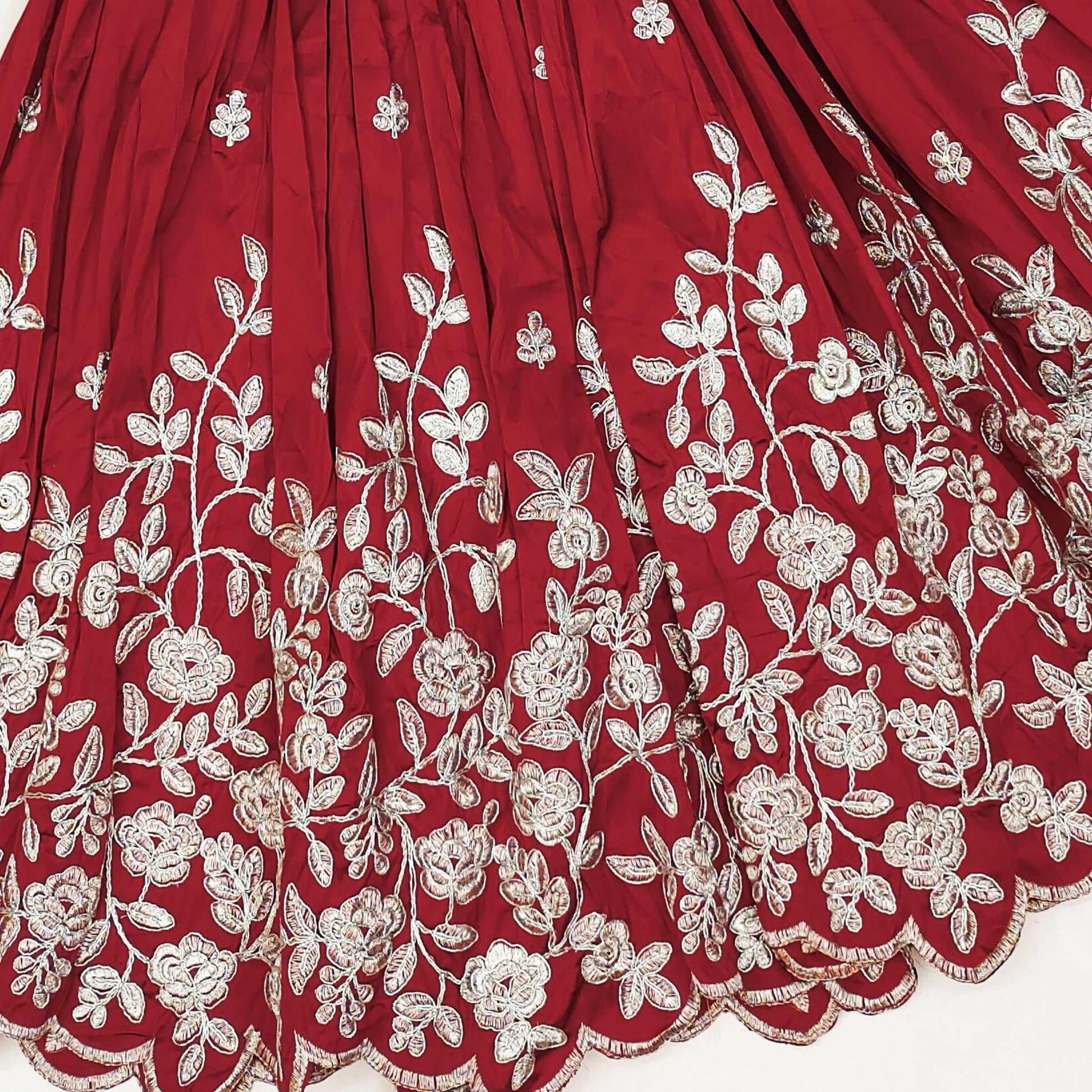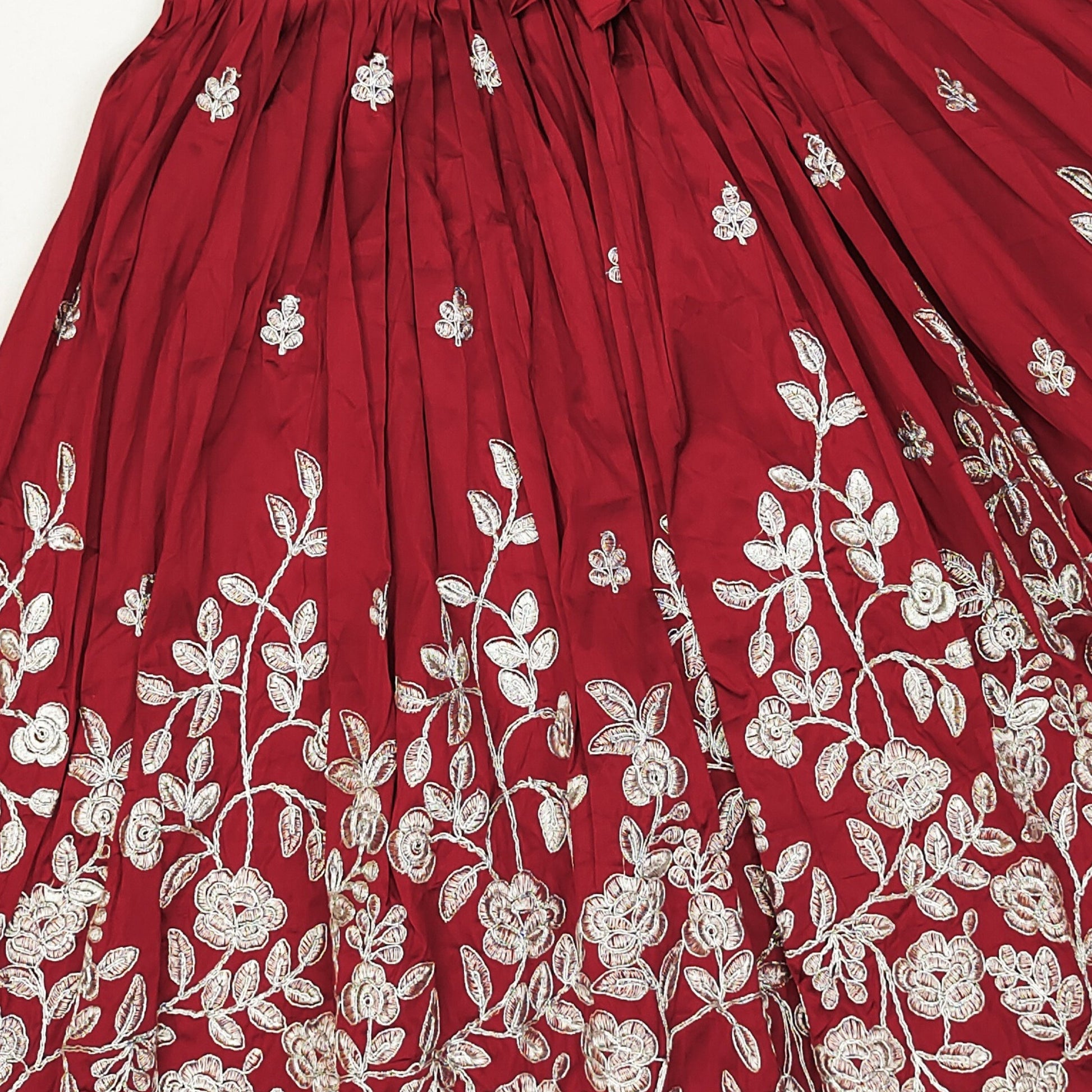 Make your little girl the center of attention with this Maroon Color lehenga choli set, a joyful fusion of tradition and trend. Perfect for festivals, weddings, birthdays, and family events, this outfit is crafted to bring out the playful elegance of childhood. The ensemble features a Embroidery-work choli with Cording Dori Work With fully stiched ready to wear.