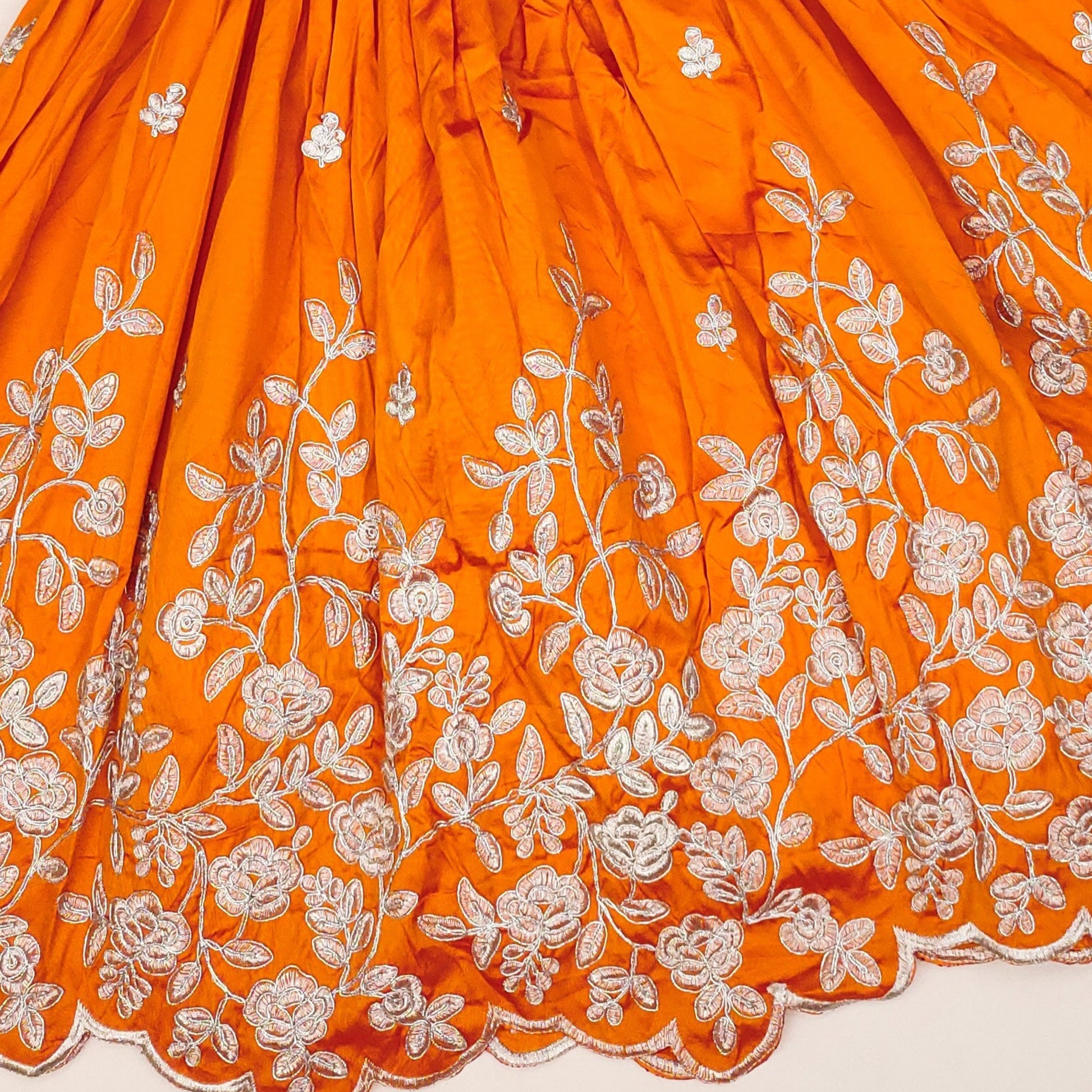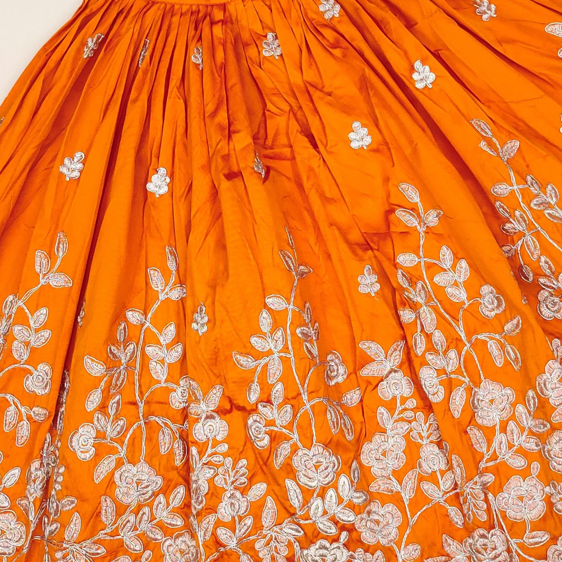 Make your little girl the center of attention with this Orange Color lehenga choli set, a joyful fusion of tradition and trend. Perfect for festivals, weddings, birthdays, and family events, this outfit is crafted to bring out the playful elegance of childhood. The ensemble features a Embroidery-work choli with Cording Dori Work With fully stiched ready to wear.