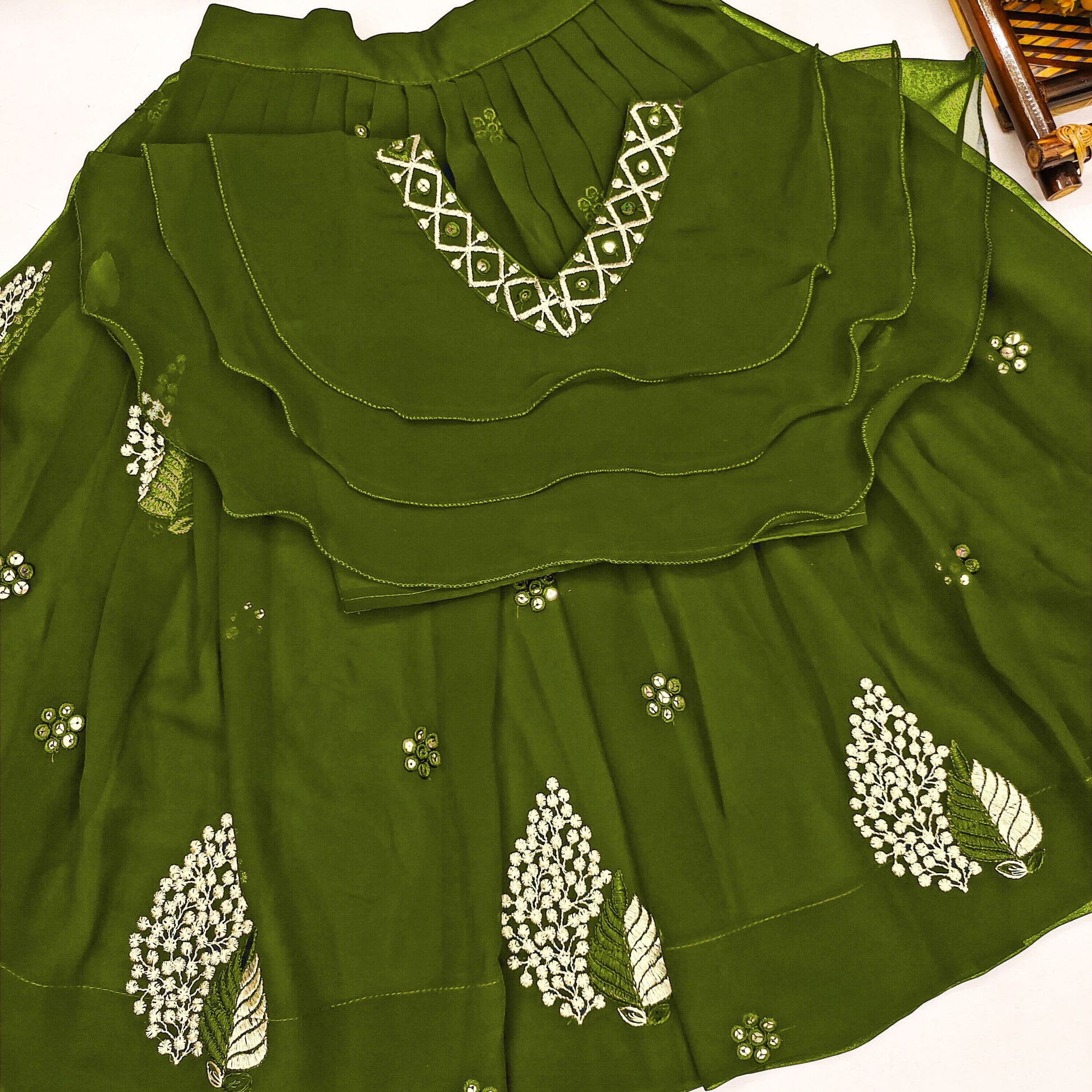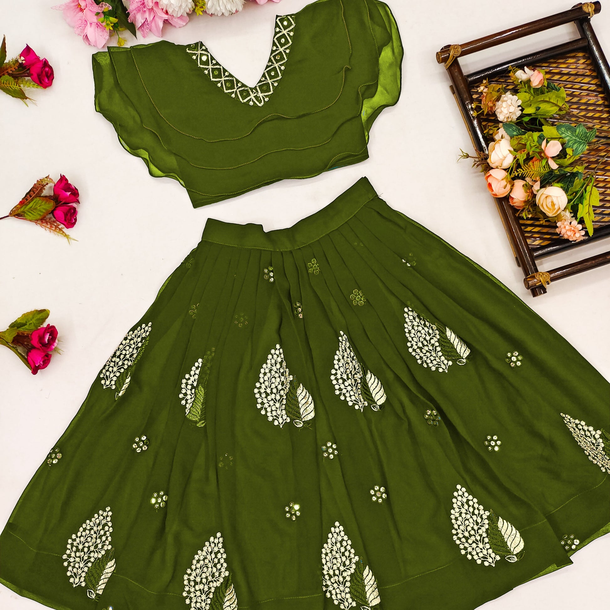 ✨ Let your little princess shine in this elegant Mahendi Lehenga Choli Set – a perfect blend of traditional charm and modern flair! 💙 Ideal for weddings, festivals, and special celebrations – this outfit is designed to turn heads and capture hearts. 💫👧